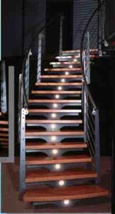 Einholm-Stahltreppe, Stufe in Buche, Geländer in Stahl, mitlaufende Edelstahlstäbe, Handlauf in Edelstahl
